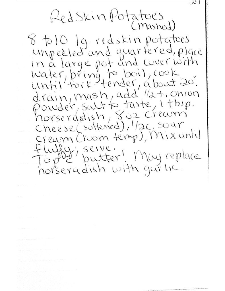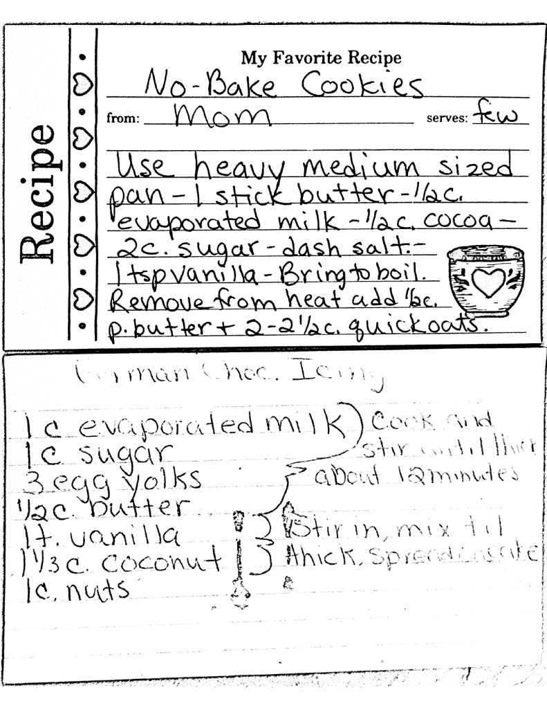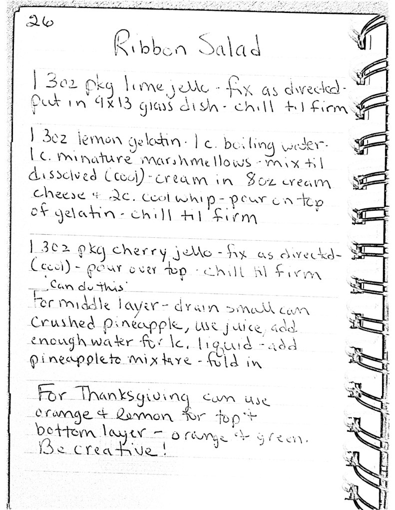 When mom went into hospice care she spent a lot of time in the house, mostly knitting scarves (which many of you have) but she also worked on photo albums and recipe books for us kids. She only got one of the recipe books done and I have copied it below, I know that she would want to share her favorite recipes. She had such a generous spirit, she loved cooking for a crowd (even though it always stressed her out because she so badly wanted things to be perfect).